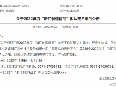 浙江省经济和信息化厅于2023年1月9日公示了2022年度“浙江制造精品”拟认定名单,豪门国际官网股份有限公司“第五代移动警务终端P99